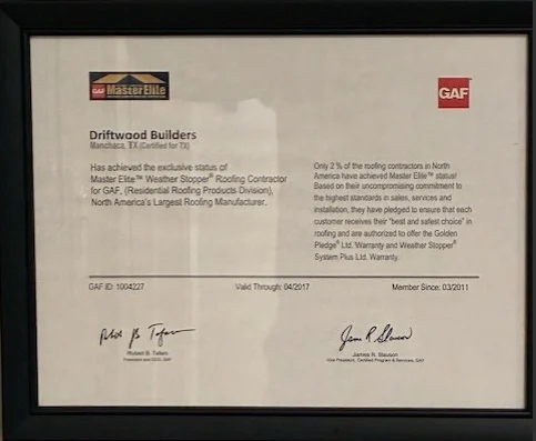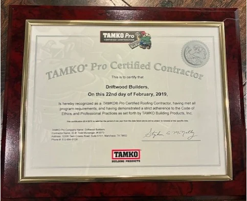 I was referred to Driftwood Builders Roofing by several neighbors and had a wonderful experience with the company. They worked with my insurance company and helped me understand the process. The quality of their work was unsurpassed. I had it inspected by a third-party inspector who spoke very highly Of their work. Even a year after the roof was replaced, I had a question after a storm and they came over immediately and inspected my roof.